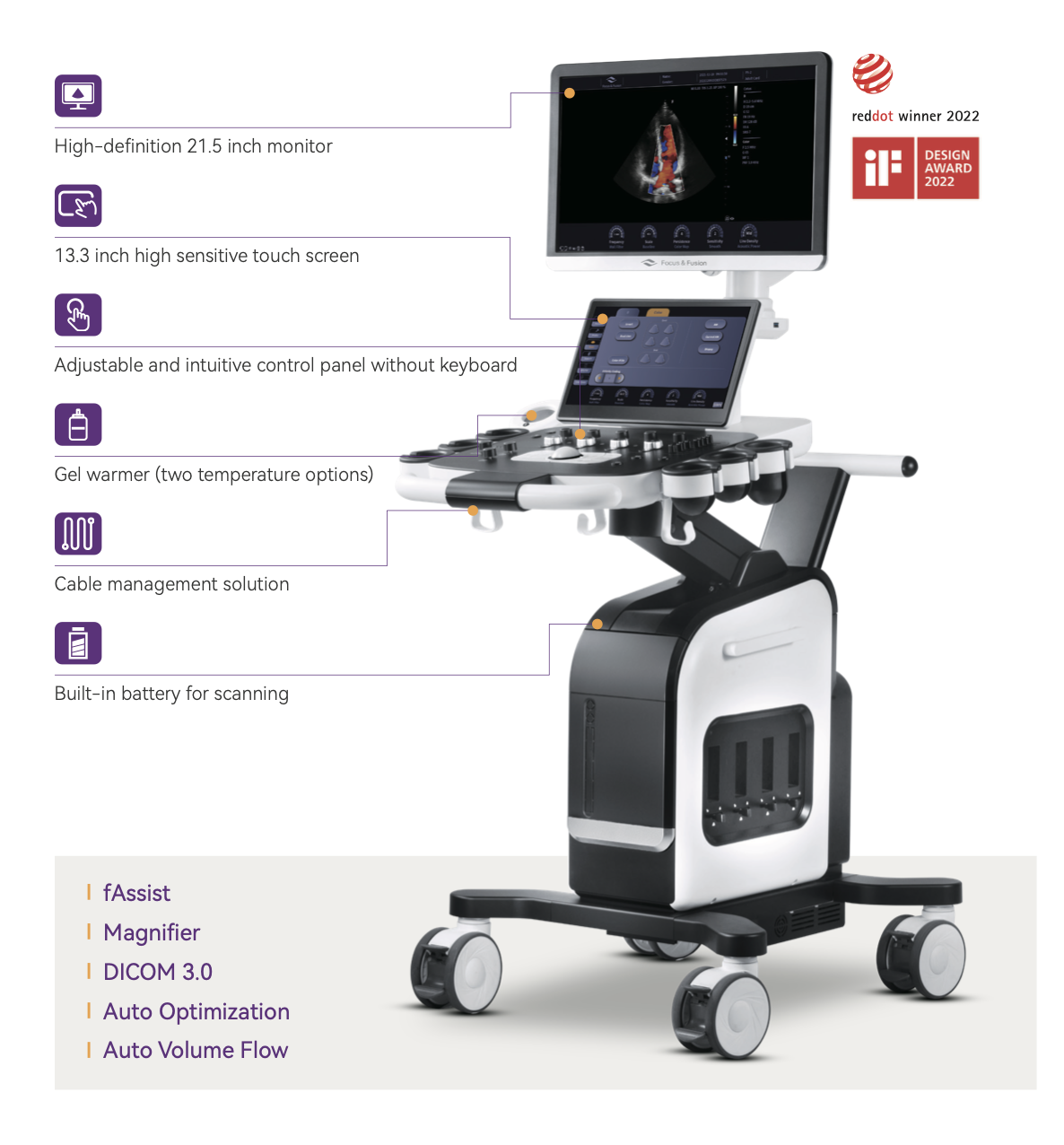 Cetus 40 là hệ thống siêu âm Doppler màu dạng xe đẩy thế hệ mới, tích hợp hiệu năng vượt trội, quy trình làm việc tối ưu và khả năng ứng dụng đa dạng. Thiết bị đáp ứng hiệu quả nhiều chuyên khoa như chẩn đoán hình ảnh, sản phụ khoa, tim mạch, nhi khoa và cơ xương khớp (MSK).
